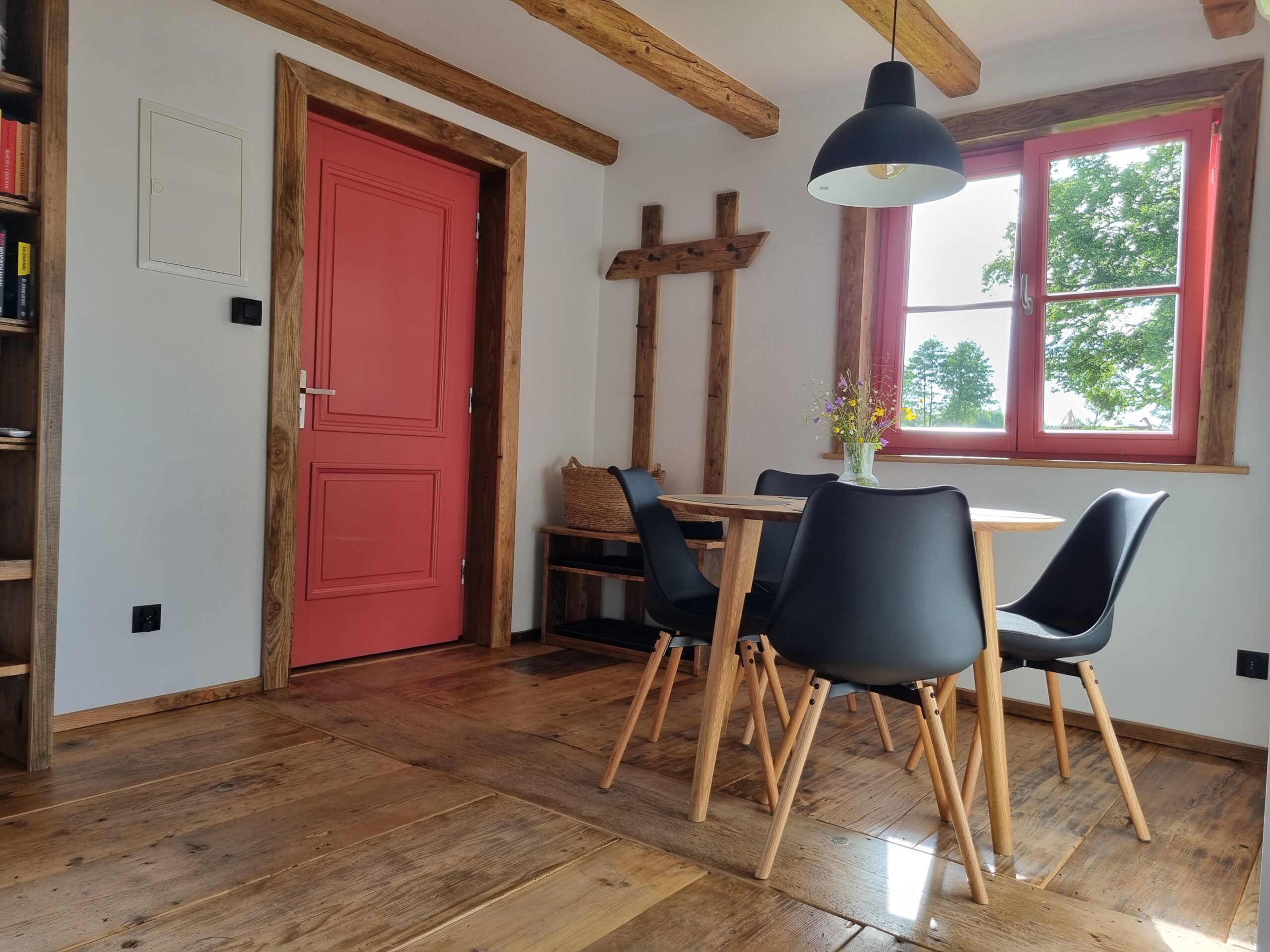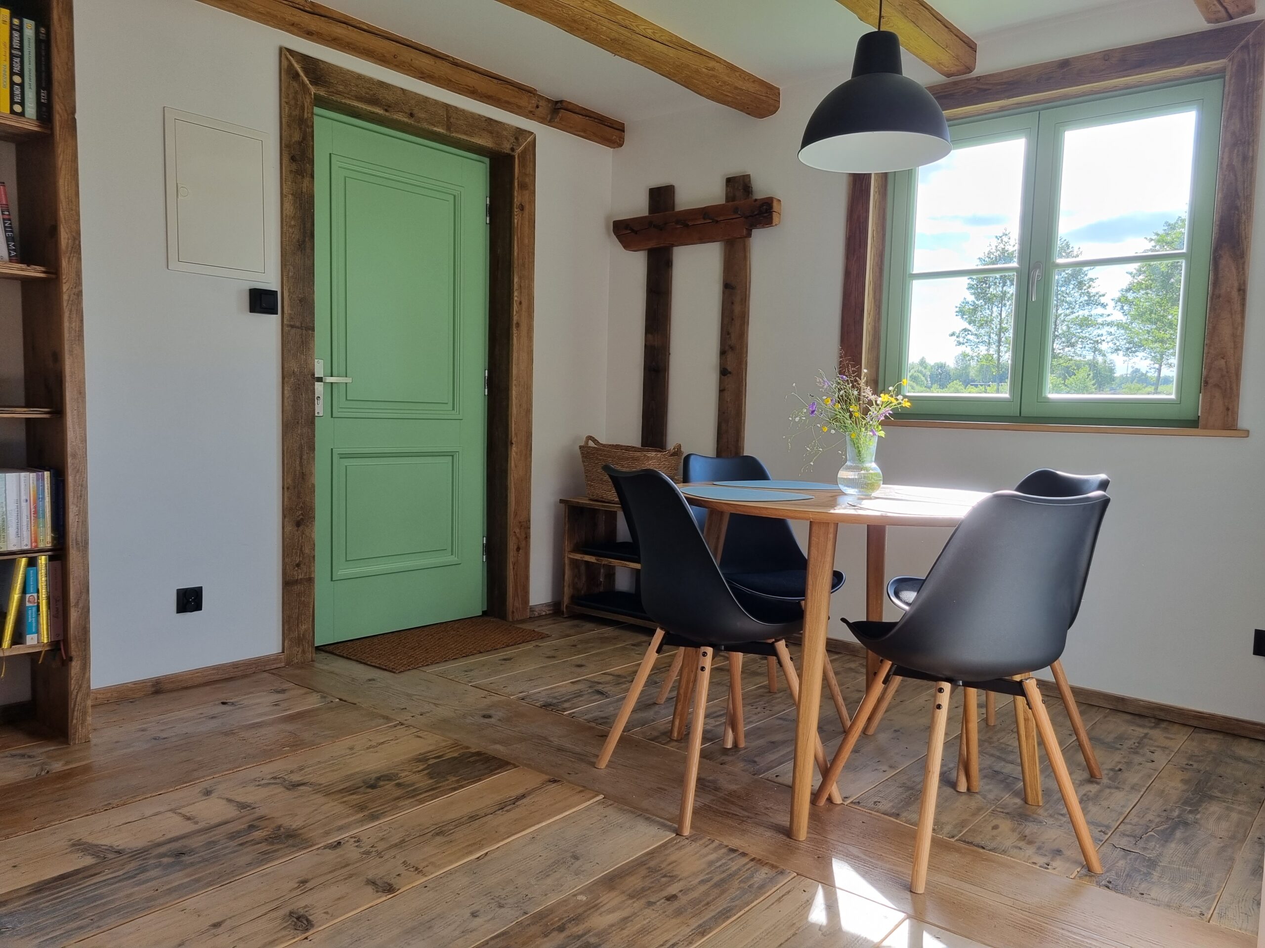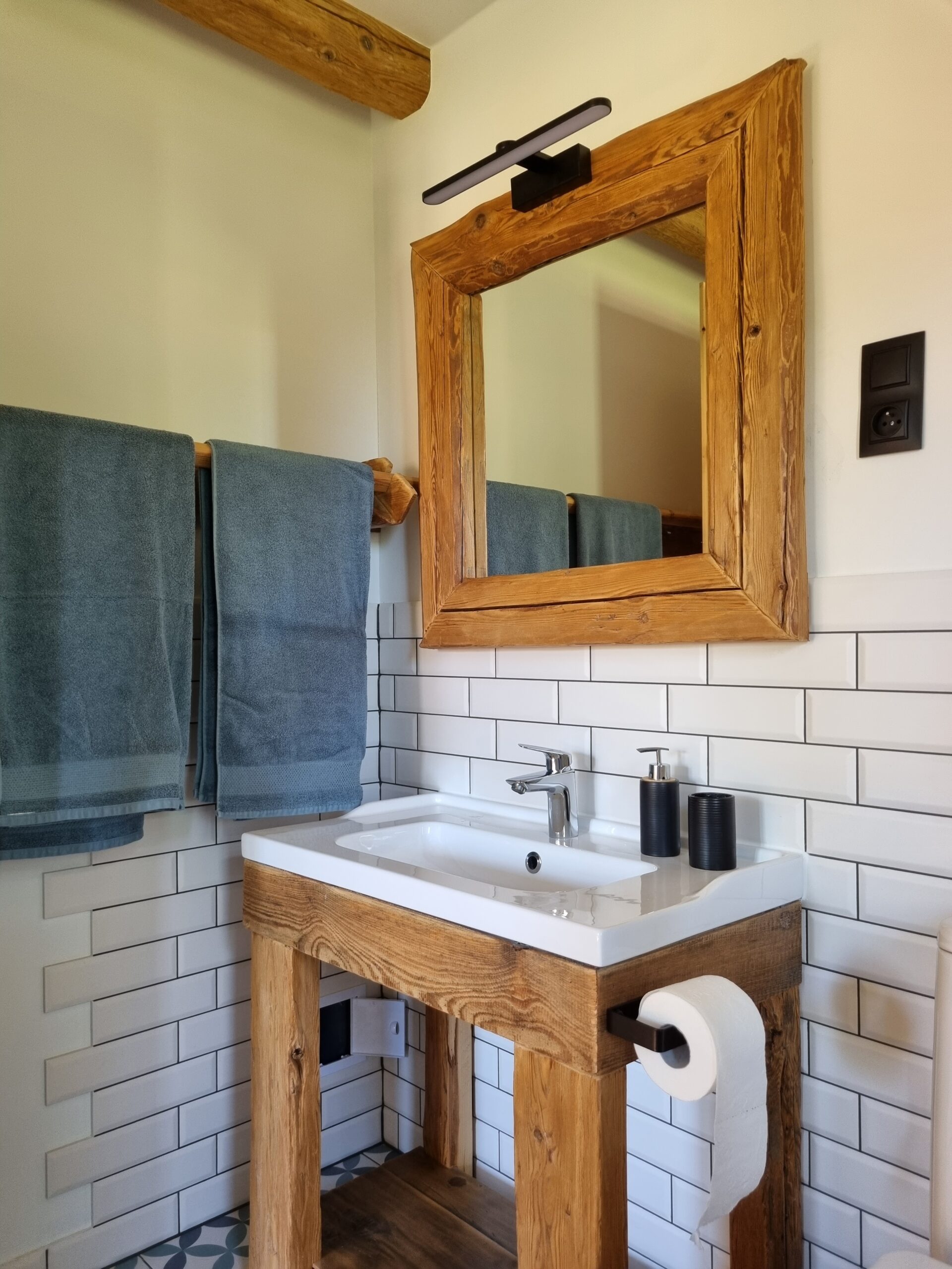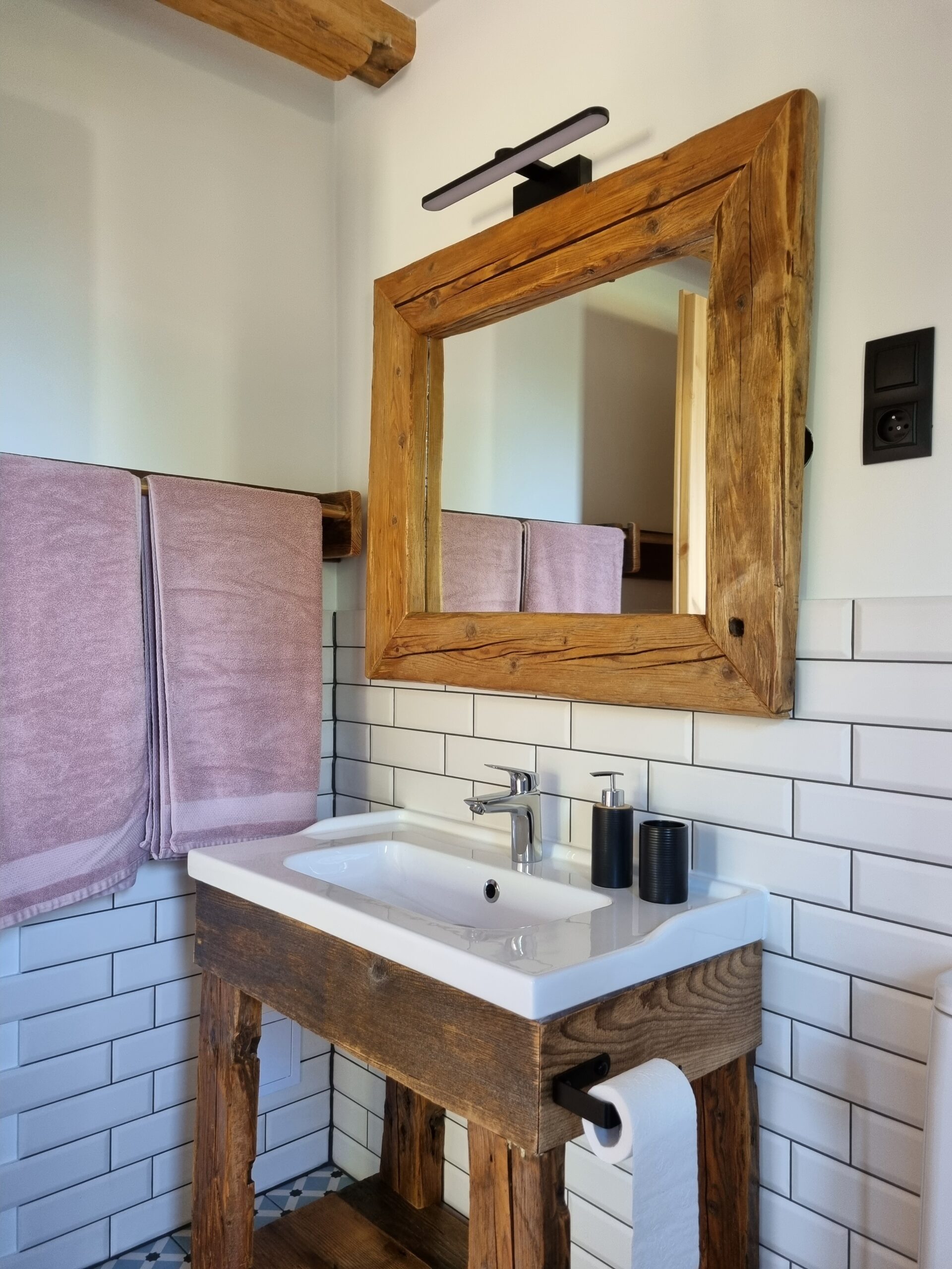 Zależało nam na stworzeniu miejsca, które wpisze się charakterem i wyglądem w okolicę. Nasze domki powstały z projektu rysowanego na kartce papieru, rękami lokalnego stolarza. Do budowy wykorzystaliśmy materialy z recyklingu – mamy starą dachówkę i podłogę, którą wyszukaliśmy na drugim końcu Polski, a konstrukcja domków jest z ponad stuletniego drewna.